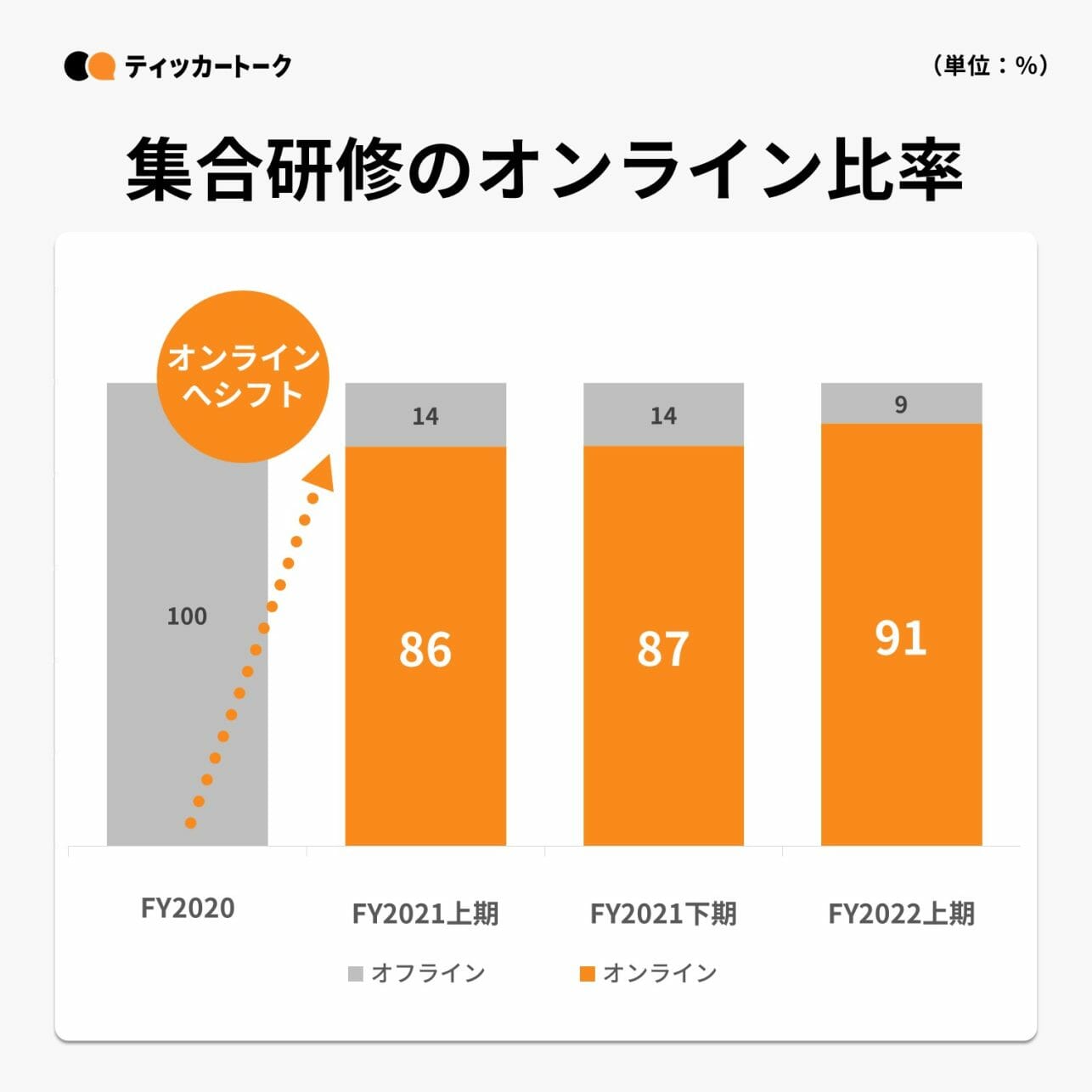 コロナ禍への対策は、オンライン比率にも表れている。セルムにおける集合研修のオンライン比率は、FY20の0%からFY22Q3時点で86%と形式を大きく変更。世の中の動きに柔軟に対応することができている。