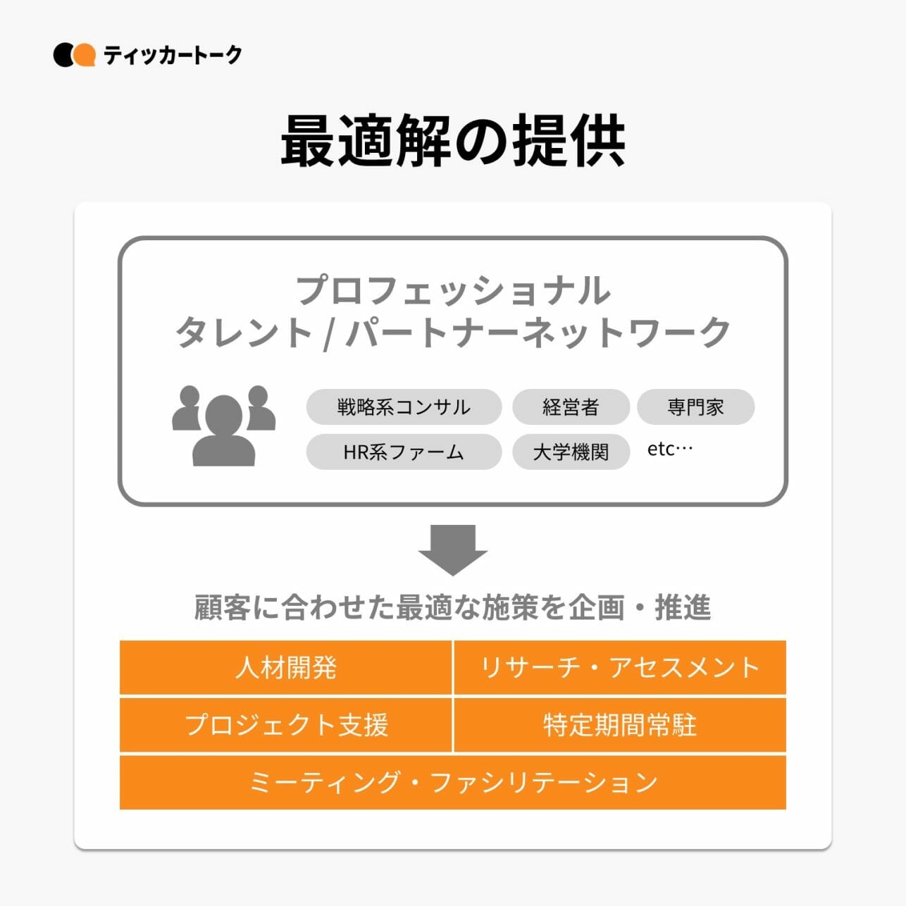 同社の強みは、1,300名(FY2021実績)を超えるプロフェッショナルタレント / パートナーのネットワークにある。顧客企業それぞれが抱える多様な課題に対し、適切なプロフェッショナルタレント/パートナーをアサイン。フルカスタマイズ型の、顧客に合わせた最適なソリューションの提供を実現している。