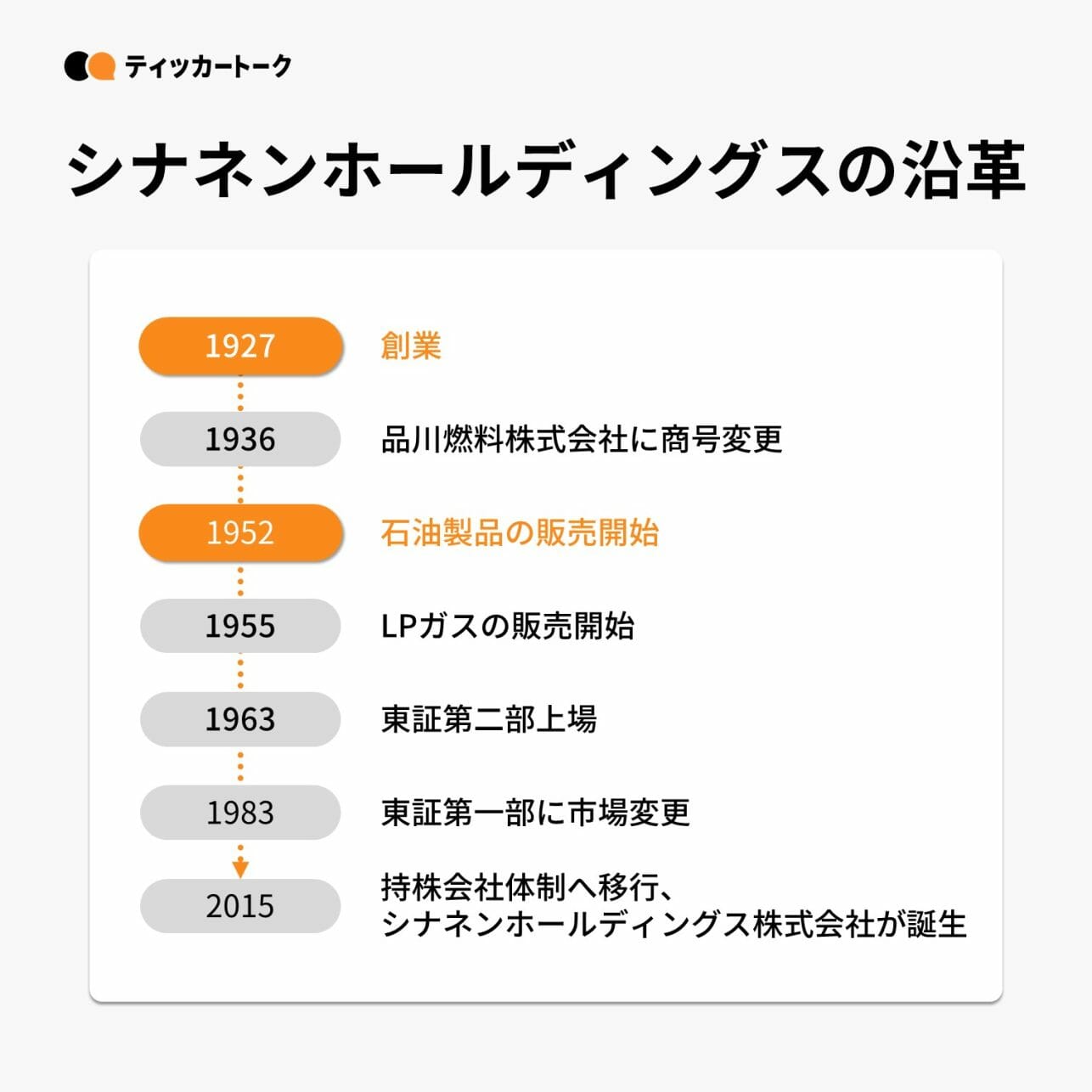 同社は、1927年に創業、その後、複数のM&Aを経て1936年に社名の由来となる品川燃料㈱に商号を変更。1950年代には、LPガス・石油製品の販売を開始し、1963年には東証2部に株式上場。市場変更や持株会社体制への移行を経て、現在に至る。2027年には創業100周年を迎える長い歴史の中で、複数のM&Aや体制変更、非エネルギー事業への展開など様々な変革と拡張を繰り返している点に特徴を持つ。