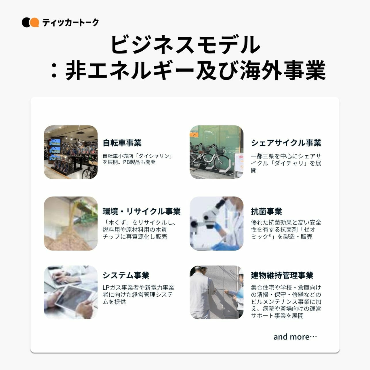 主力のエネルギー関連では、BtoC/BtoB、それぞれの事業を展開。さらに、エネルギー関連で築いた経営基盤を活かし、非エネルギー分野へ事業ポートフォリオを拡大している。