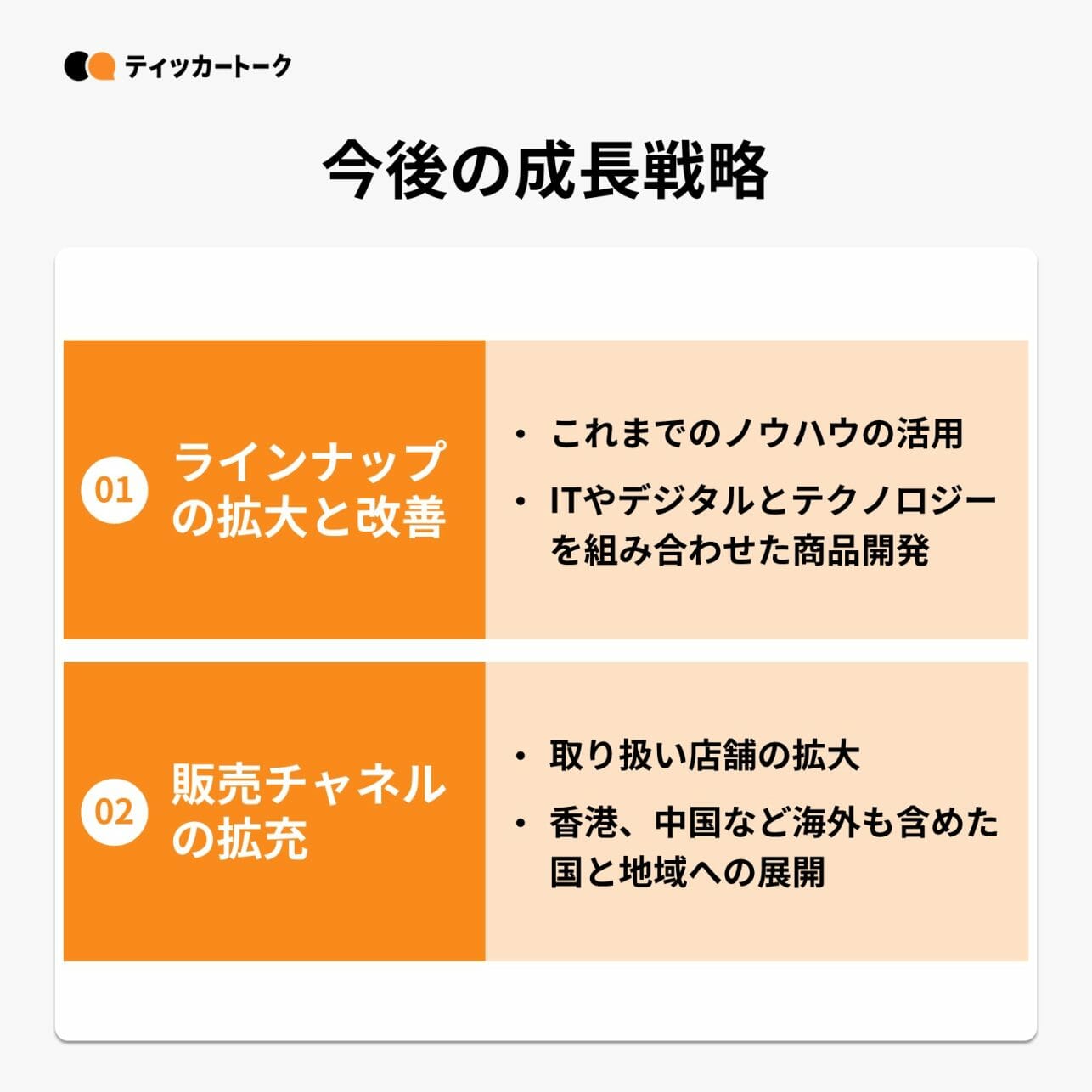 また、それらを支える製造委託先の拡充や、原材料の調達および価格変動への対応なども優先課題として挙げられている。