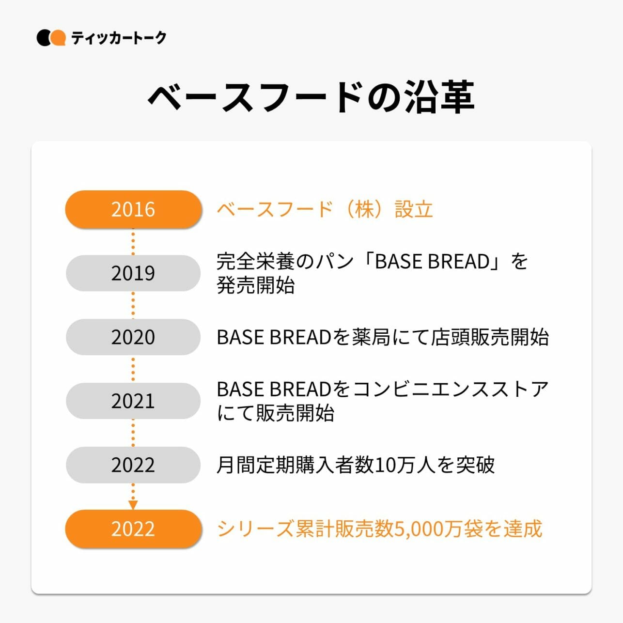 2016年4月にベースフード株式会社を設立。2019年3月に現在の主力商品である完全栄養のパン「BASE BREAD」を発売開始。