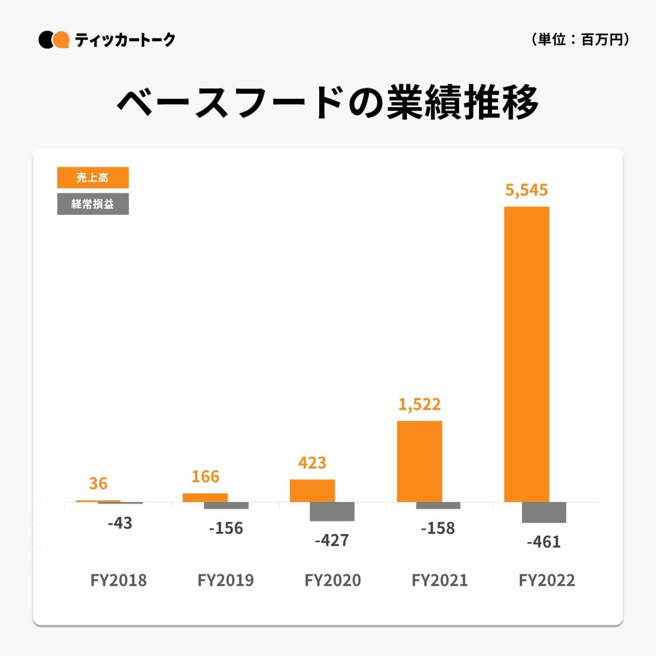 直近の2022年2月期決算では売上高が前年比264%増の5,545百万円と大きく成長中。経常損益は5期連続赤字で、FY22では▲461百万円となっている。