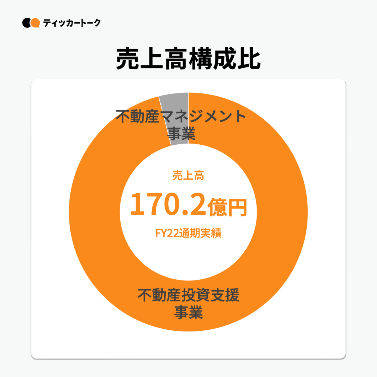 事業ごとの売上高構成比を見てみると、メイン事業となっている不動産投資支援事業が売上高を牽引しており、全体の96%の売上高を占めている。
