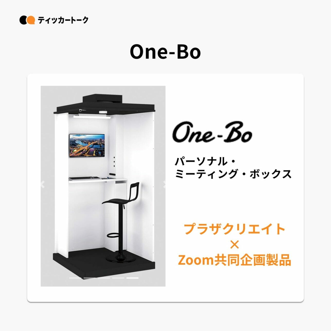 2021年にリリースしたOne-Boはコロナ禍でMeetingスペースに悩む企業の課題を解決するために開発されたパーソナルミーティングボックスオンラインテレビ会議ツールを運営するZoom社と共同開発しておりWith コロナ時代における多様な働き方を提案していく