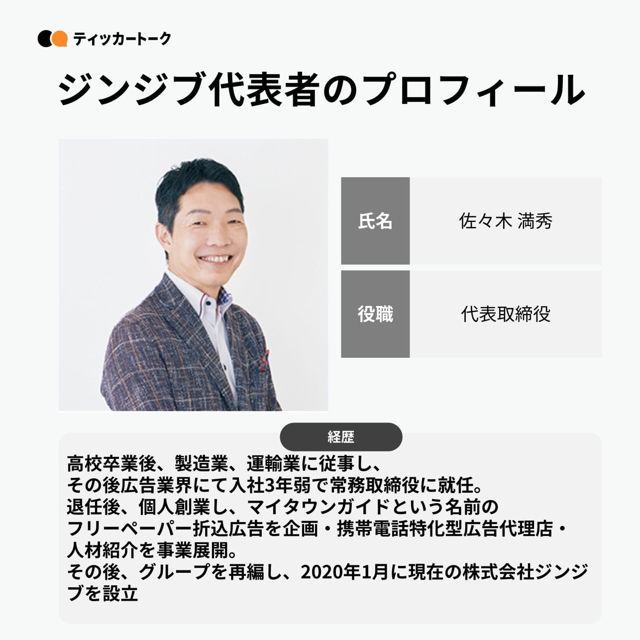 高校卒業後、製造業、運輸業に従事し、その後広告業界にて「人の何倍も働く」をモットーとして社内で最高収益を続け、入社3年弱で常務取締役となりました。退任後、個人創業し、「無料での情報提供」マイタウンガイドという名前のフリーペーパー折込広告を企画、それを足掛かりに携帯電話特化型広告代理店へと展開し、人材紹介へも事業展開してまいりました。その後、社会課題解決の影響が最も大きい高卒人材採用支援事業へ集中させるため、グループを再編し、2020年1月に現在の株式会社ジンジブを設立し、当社のパーパスである「これからを生きる人の夢を増やす」の実現にトップとして日々まい進しております。