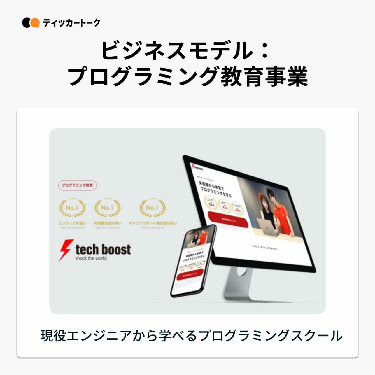 tech boostは、実務経験のある現役エンジニアが、メンターとして学習をサポートしてくれるプログラミング学習サービス。教育の側面から、IT人材データベースの拡大にも寄与している。