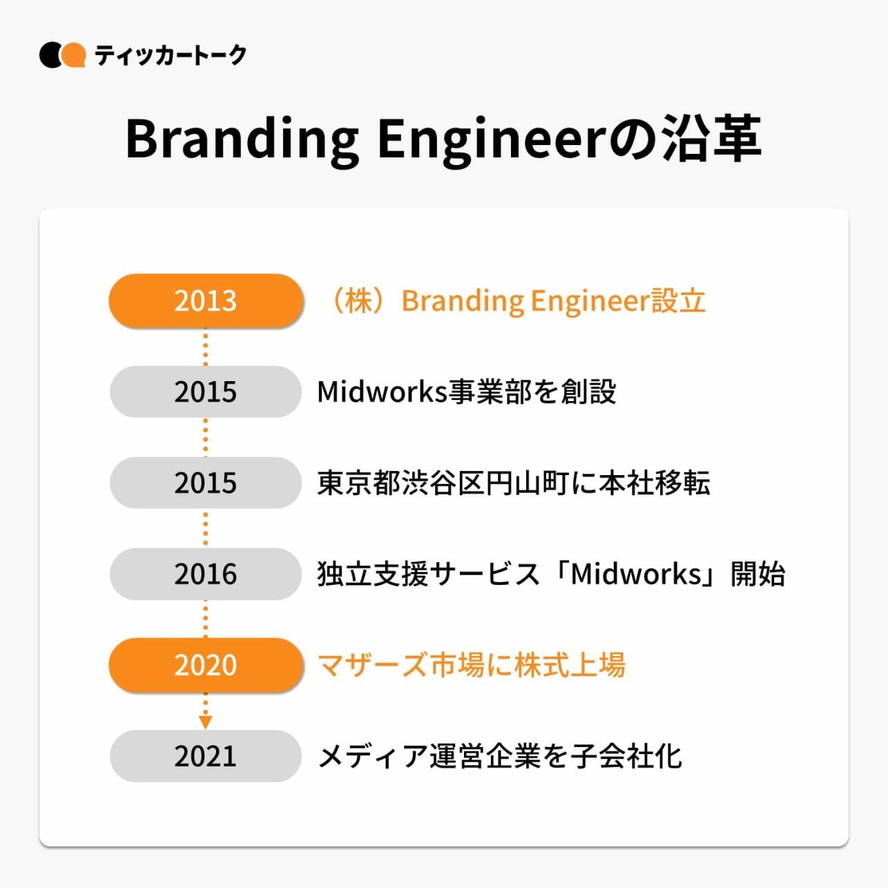 株式会社Branding Engineerはエンジニアと企業をマッチングするプラットフォーム「Midworks」を軸に、保有するIT人材データベースと自社メディアを活かして事業を展開している企業。社会的なIT人材不足を追い風に急速に売上を伸ばしている。