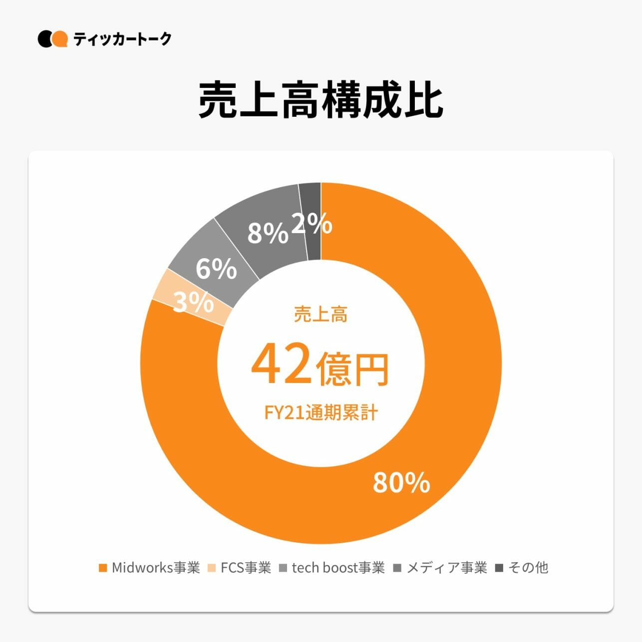 売上の約8割はマッチングサービス「Midworks」で構成されている。直近数年の売上の伸長も、主にこのMidworks事業が担っている状況。