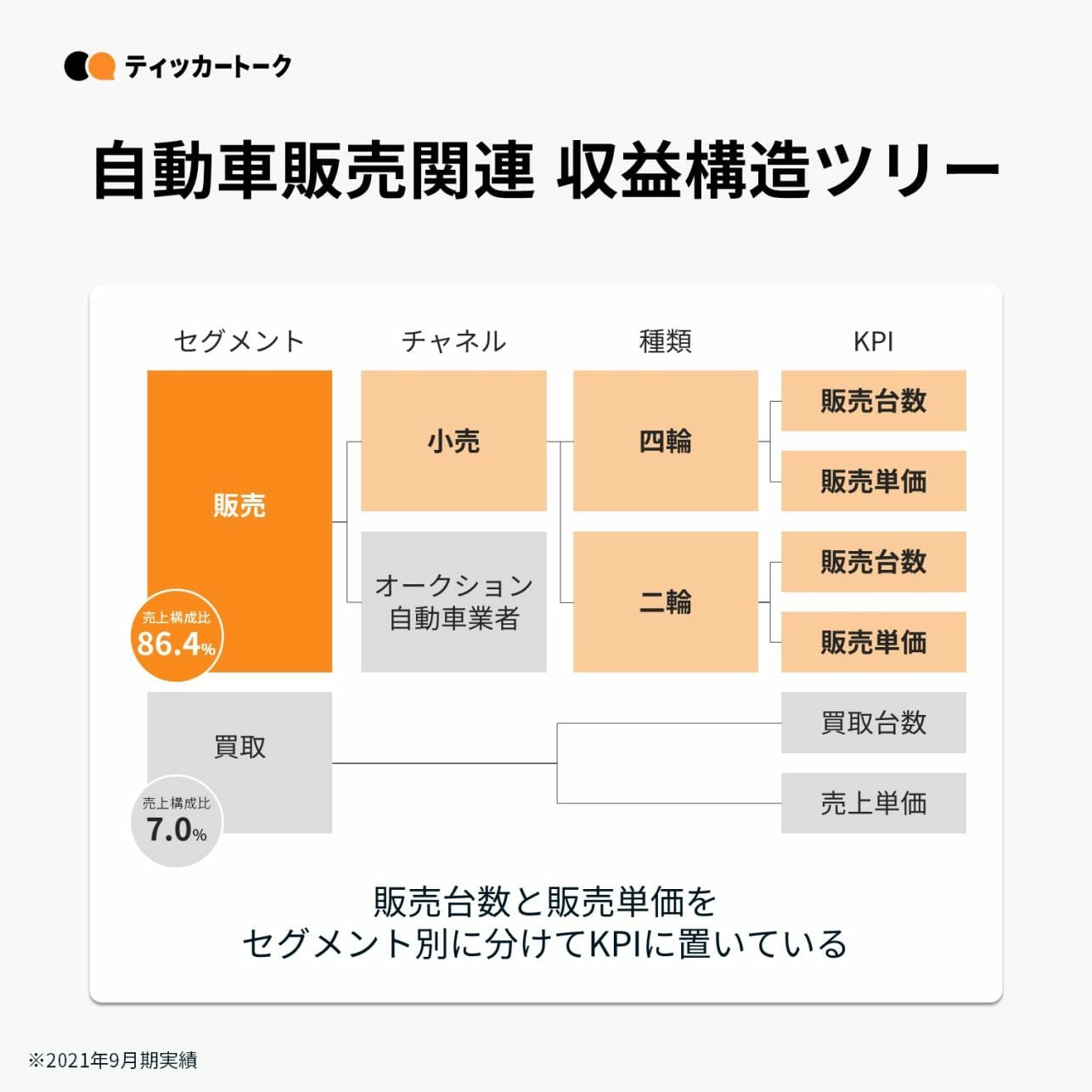 なおグッドスピードでは収益構造ツリーを以下のように分解販売台数と販売単価をセグメント別に分けKPIに置いている