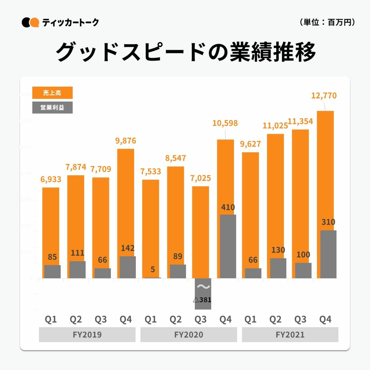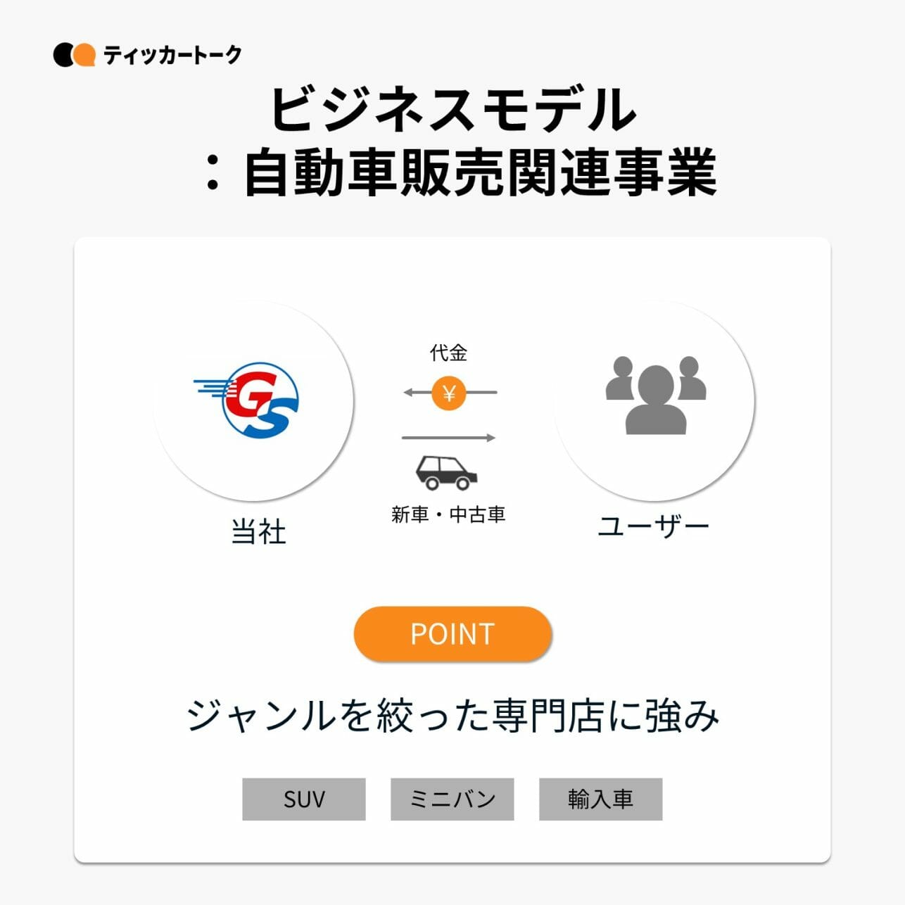 自動車販売関連事業はオートオークションや買取事業で仕入れたクルマをユーザーに販売し代金を得る小売のビジネスモデルグッドスピードはSUVミニバン輸入車などジャンルを絞った専門店に強みを持っている