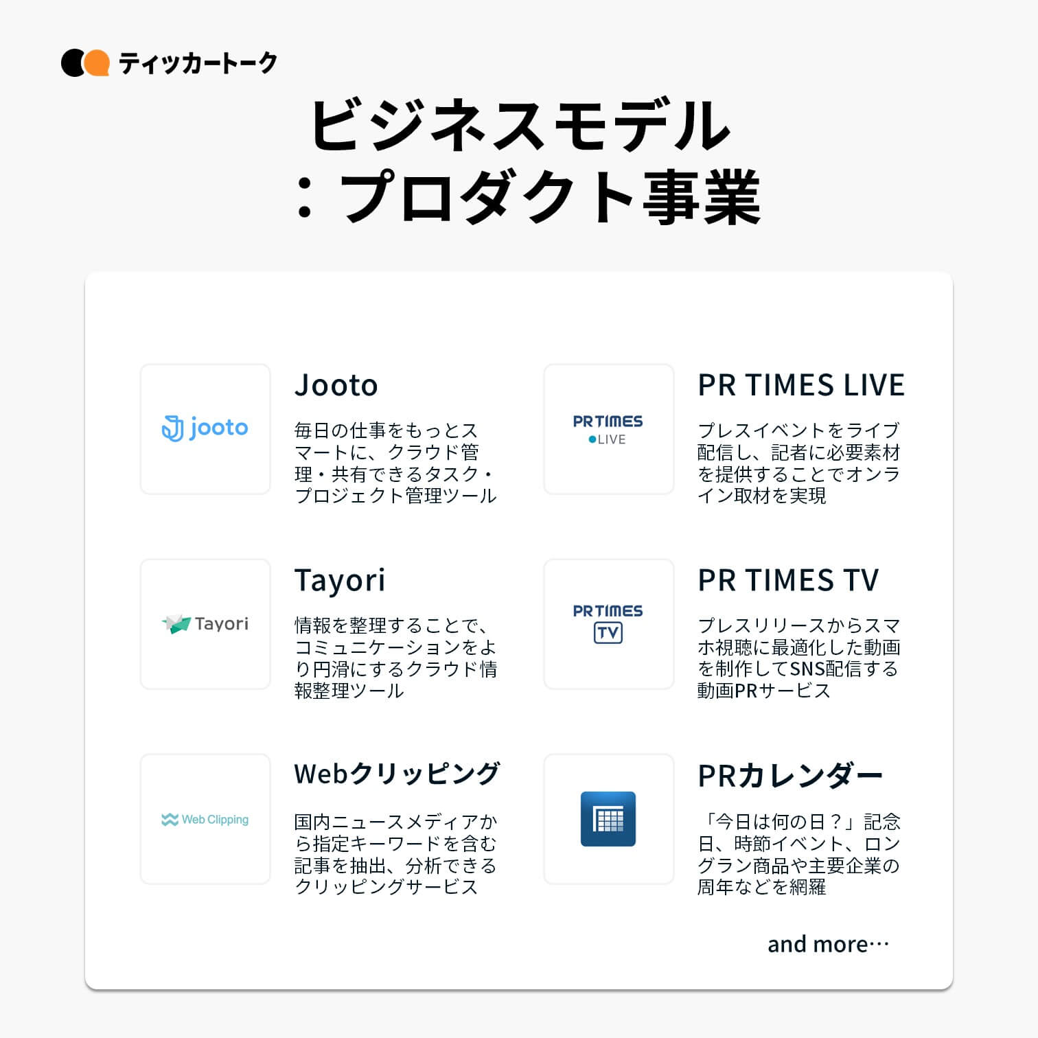 株式会社PR TIMESは、提供する企業とメディア、そして生活者をニュースでつなぐプラットフォーム「PR TIMES」を中心に、PR/コミュニケーション領域で様々な事業を展開する企業。タスク・プロジェクト管理ツールの「Jooto」、スタートアップメディア「BRIDGE」など、プロダクトやWebメディアも運営。