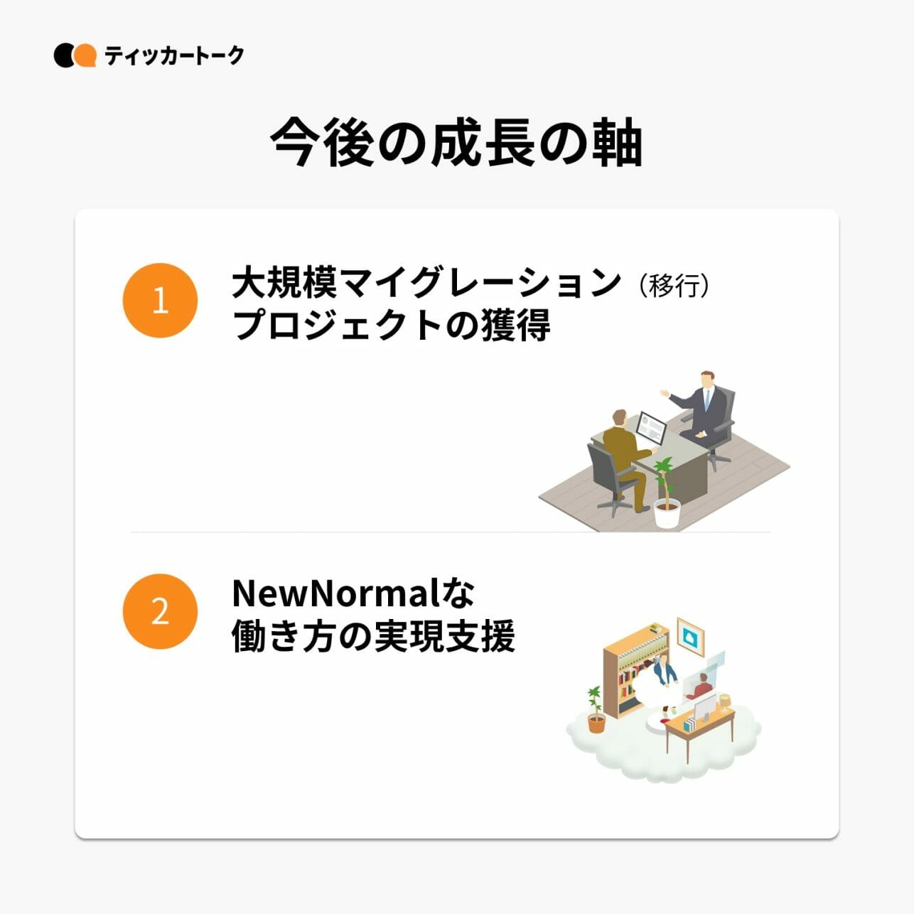 これだけクラウドが普及したとはいえ、国内企業の半数以上がクラウドを導入していない。コロナ禍におけるニューノーマルな働き方のニーズを捉えながら、大規模なクラウド移行案件の受注と新たな付加価値を提案していくことが今後の成長のカギとなる。