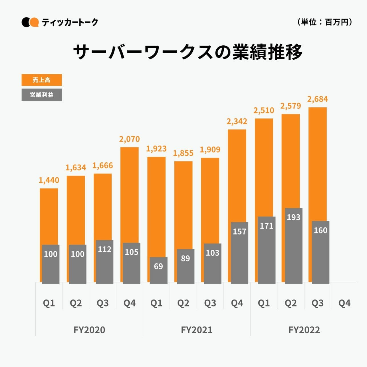 ハード調達難を受けたAWSへの代替需要拡大などを背景に、売上高・営業利益ともに堅調に成長している。