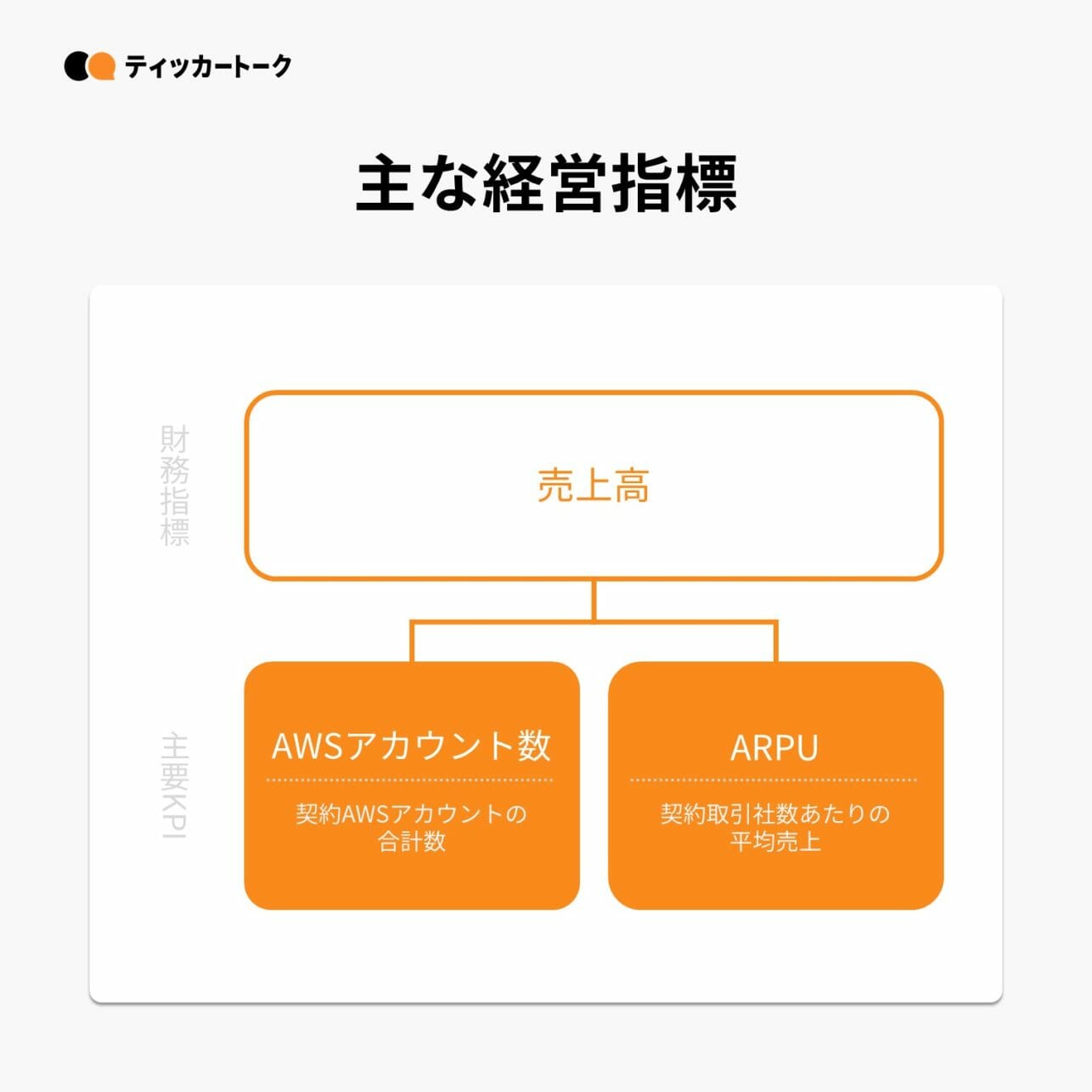 サーバーワークスの主な経営指標は、AWSアカウント数とARPU。主軸であるリセールにおけるこの2つの指標が、最も売上に大きく関わる指標となっている。