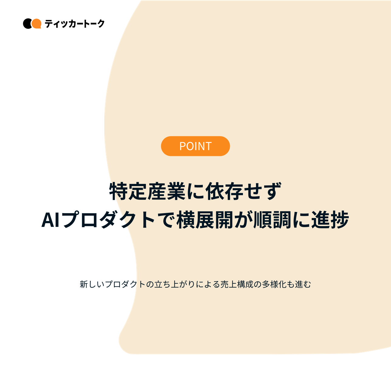今回が上場後初の決算でしたが、戦略の大事な部分であるAI(機械学習)を使って、特定産業に依存せず横展開していくことができ、順調に進捗をした第2四半期だったと思っています。売上進捗は通期予想に対して46.0%となっており、前年の進捗率と比較しても順調に推移しています。 また、プロダクトごとの売上構成でも特定のセグメントへの依存度が下がって多様化が進んでおり、新しいプロダクトも立ち上がってきている状況となっています。