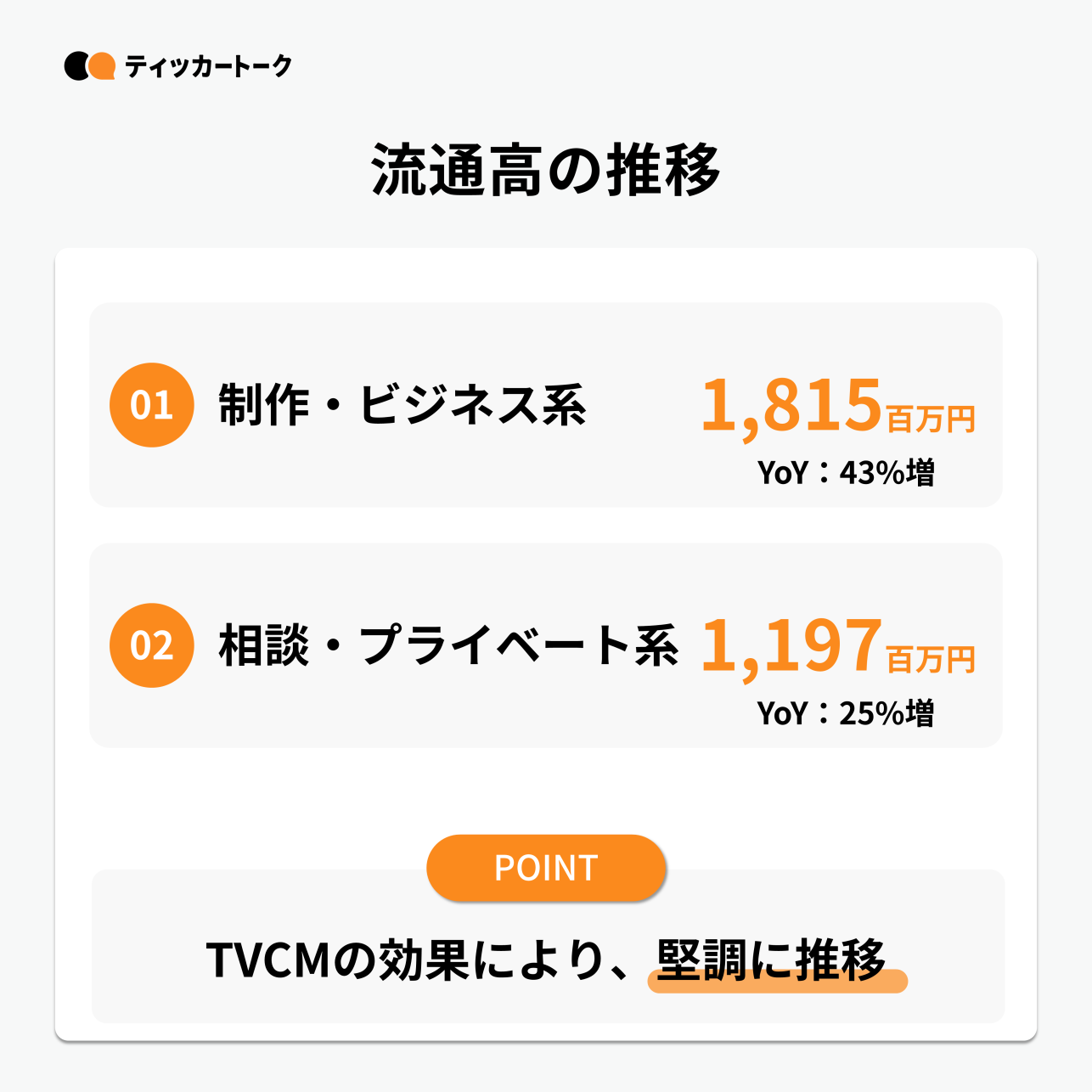 Q1に引き続きTVCMの効果もあり、堅調に推移していると考えています。Q1からの伸びが一見弱く見えますが、Q2は年末年始を挟む影響でビジネス利用が落ち込むため、季節性が要因です。