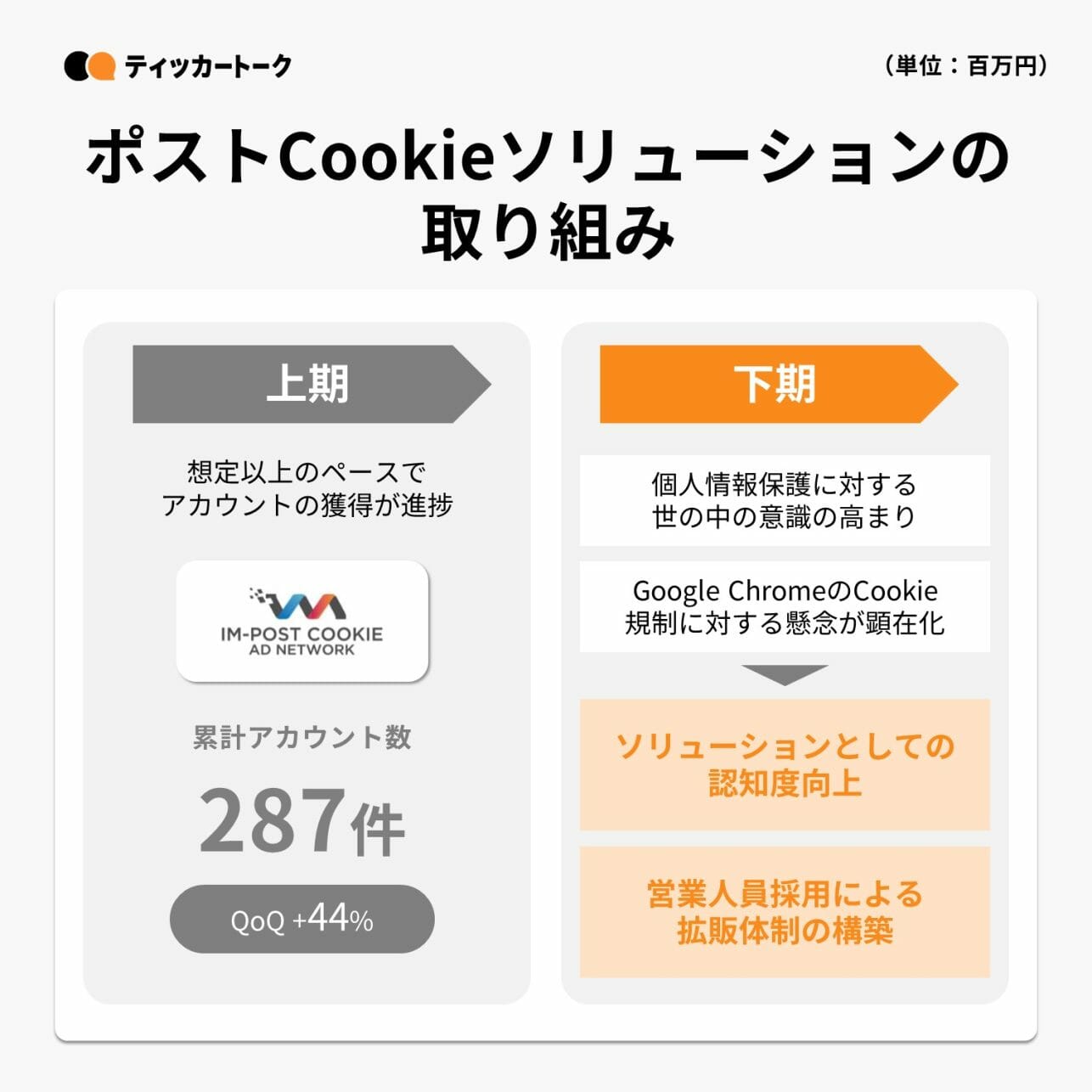 ポストCookieソリューションのアカウント数が順調に拡大していますが、上期の手応えと下期以降の取り組みについて教えてください。