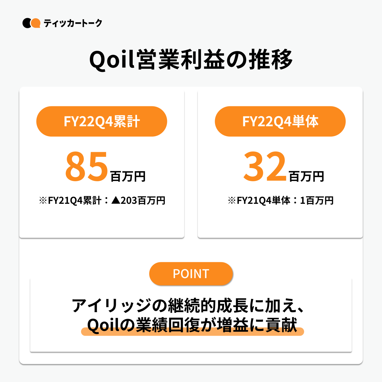 宜しくお願いします。Qoilの黒字達成の影響が大きいですね。