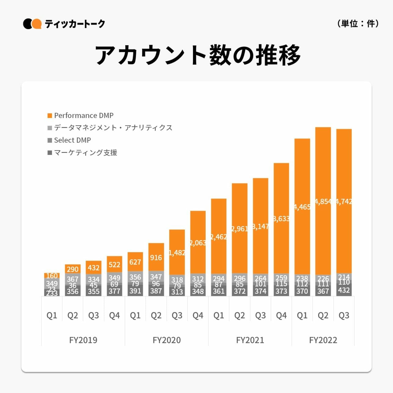 Performance DMPは成果に応じた課金体系のため、お客様に導入いただきやすい反面、中には売上に繋がっていないアカウントもあります。第3四半期は収益性の低い一部の取引を停止し、採算の高い案件へ社内リソースを注力したことで、アカウント単価が改善し売上増加に繋がりました。