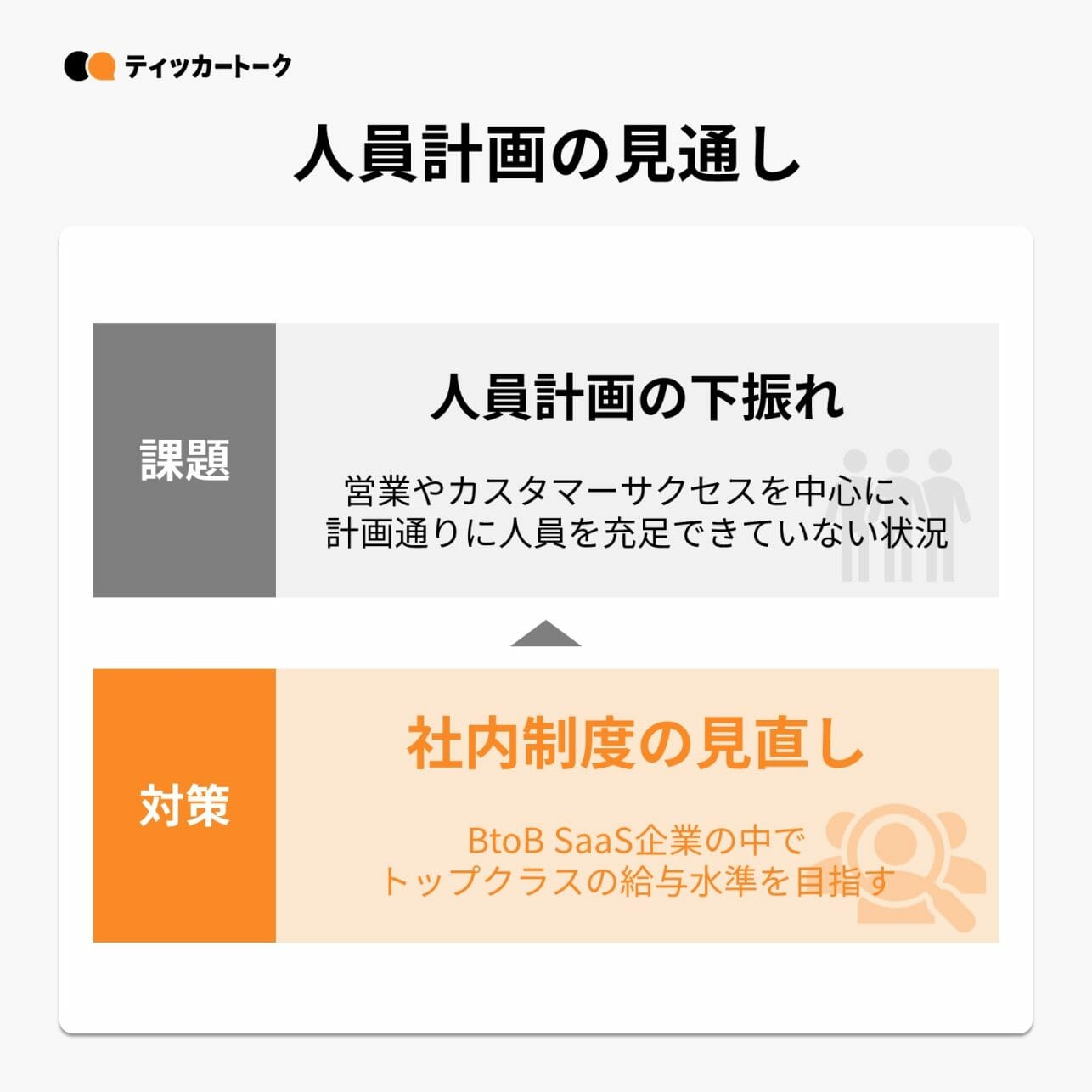 昨今のB2B SaaS業界において人材採用競争が激化していることもあり、今期に入ってから入退社数のバランスが悪化したことで、営業やカスタマーサクセスを中心に期初方針通りに人員を充足できておらず、 ブランド力とリテンションの向上に資するような施策が必要だと考えています。 その一環として、B2B SaaS企業の中でのトップクラスの給与水準を目指すよう社内制度の見直しなどを行い、より強固な組織の体制構築を目指しており、評価制度そのものを変更するものではありません。