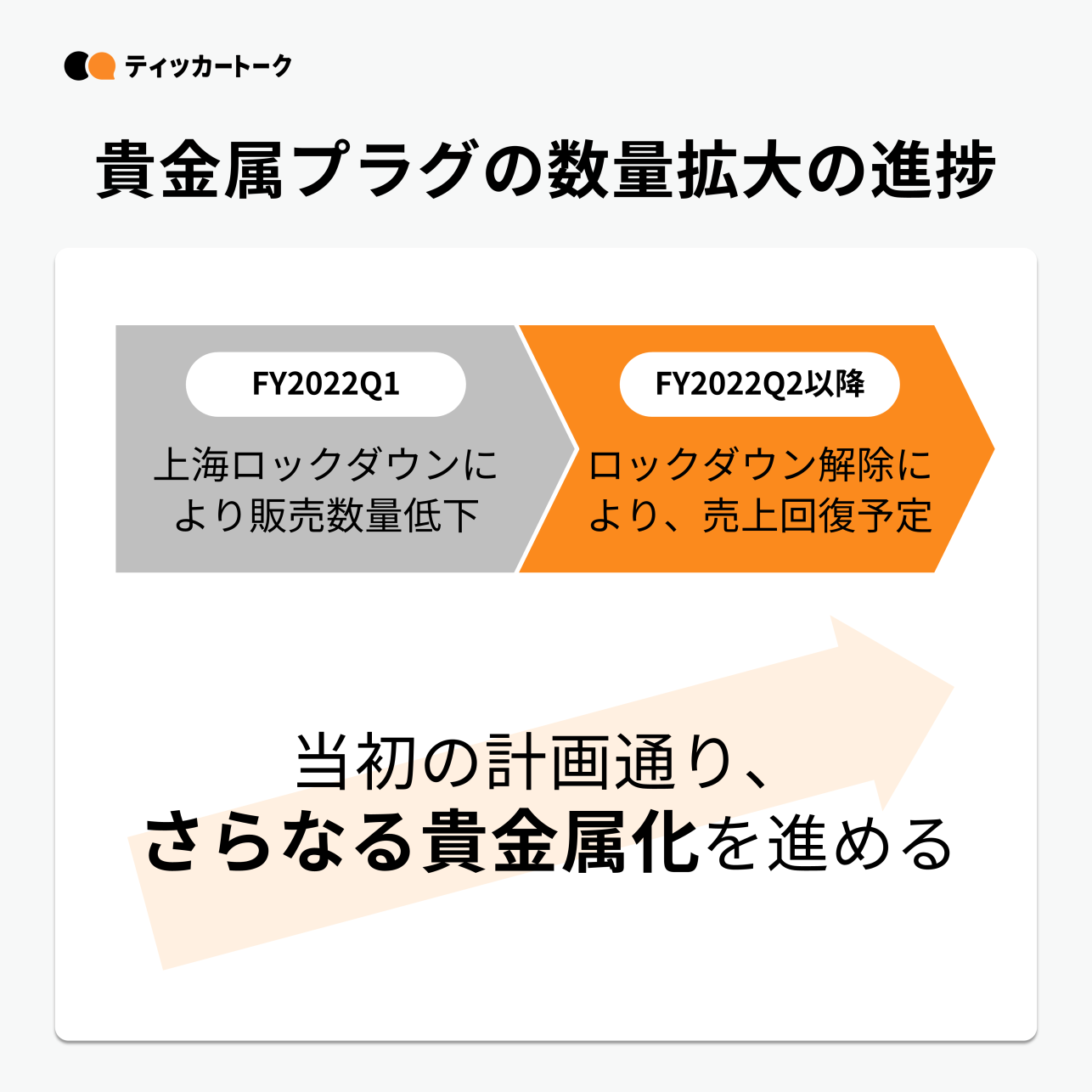 中期経営計画では貴金属タイプの高付加価値プラグの数量拡大が期待されている記載がありましたが、足元の進捗状況はいかがですか?