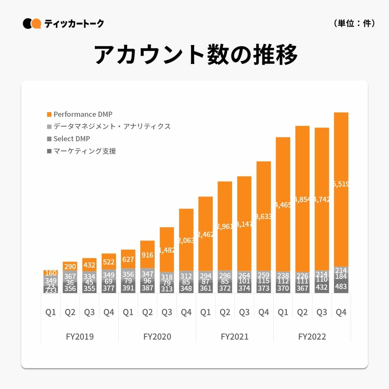 EC事業者向けの案件を中心にPerformance DMPのアカウント数が再び大きく増加したことが一番の要因です。