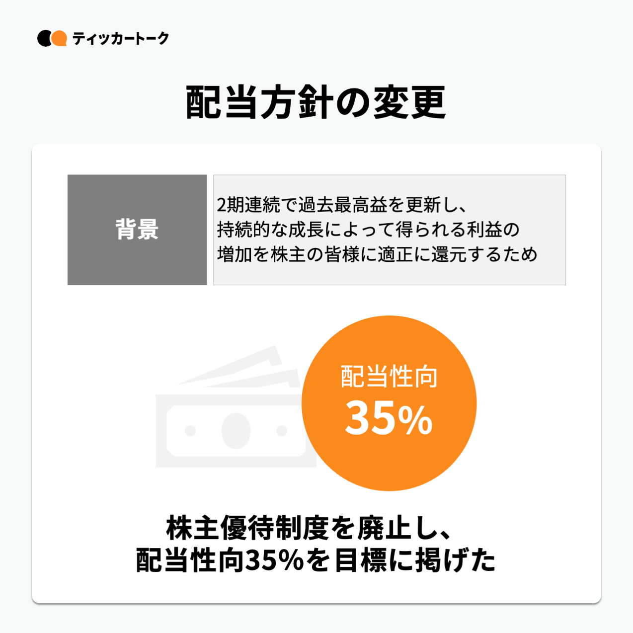 配当性向35%を始めとした配当方針変更の背景をご教示ください