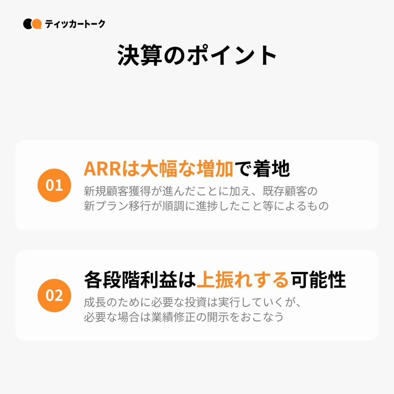 当四半期は、前四半期から引き続き、新規顧客獲得が進んだことに加え、既存顧客の新プラン移行が順調に進捗したこと等によりARPUも順調に増加しました。その結果、ARRは大幅な増加で着地しました。