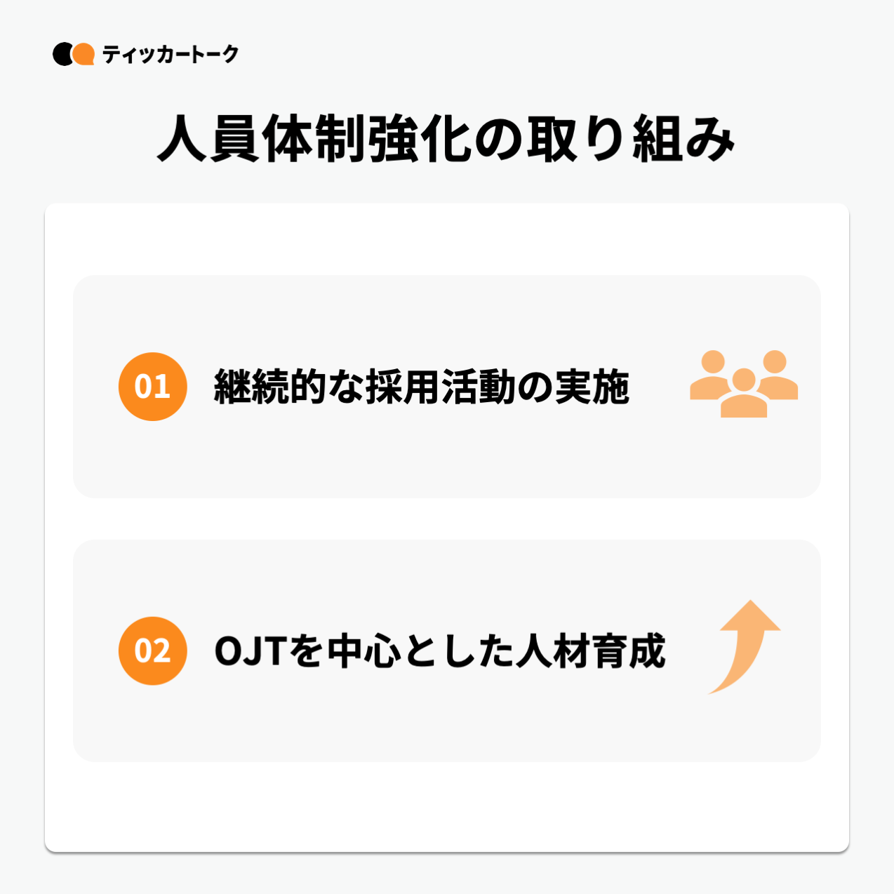 前回、物件仕入力の強化に向けて人員体制増強が必要な取り組みと伺いましたが、人員体制増強に向けた具体的な取り組みがあればご教示ください。