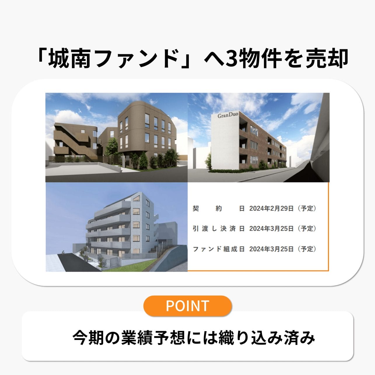 城南ファンドに3物件売却予定ということですが、こちら今期の業績予想には織り込み済でしょうか。