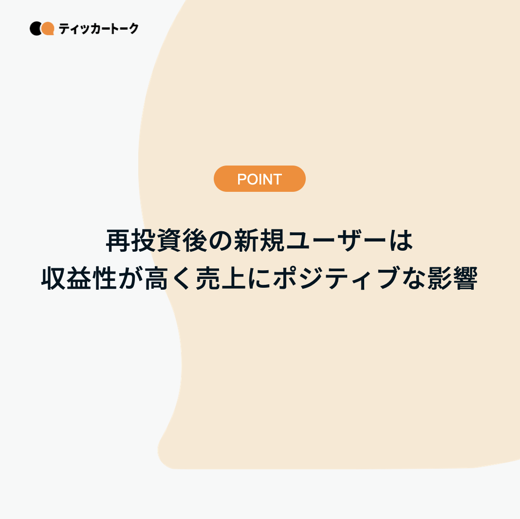 というのもユーザー数自体は変わっていないんですが、新規で良質なユーザーを獲得できており、再投資後の新規ユーザーは収益性が高く売上にポジティブな影響を与える結果になりました。