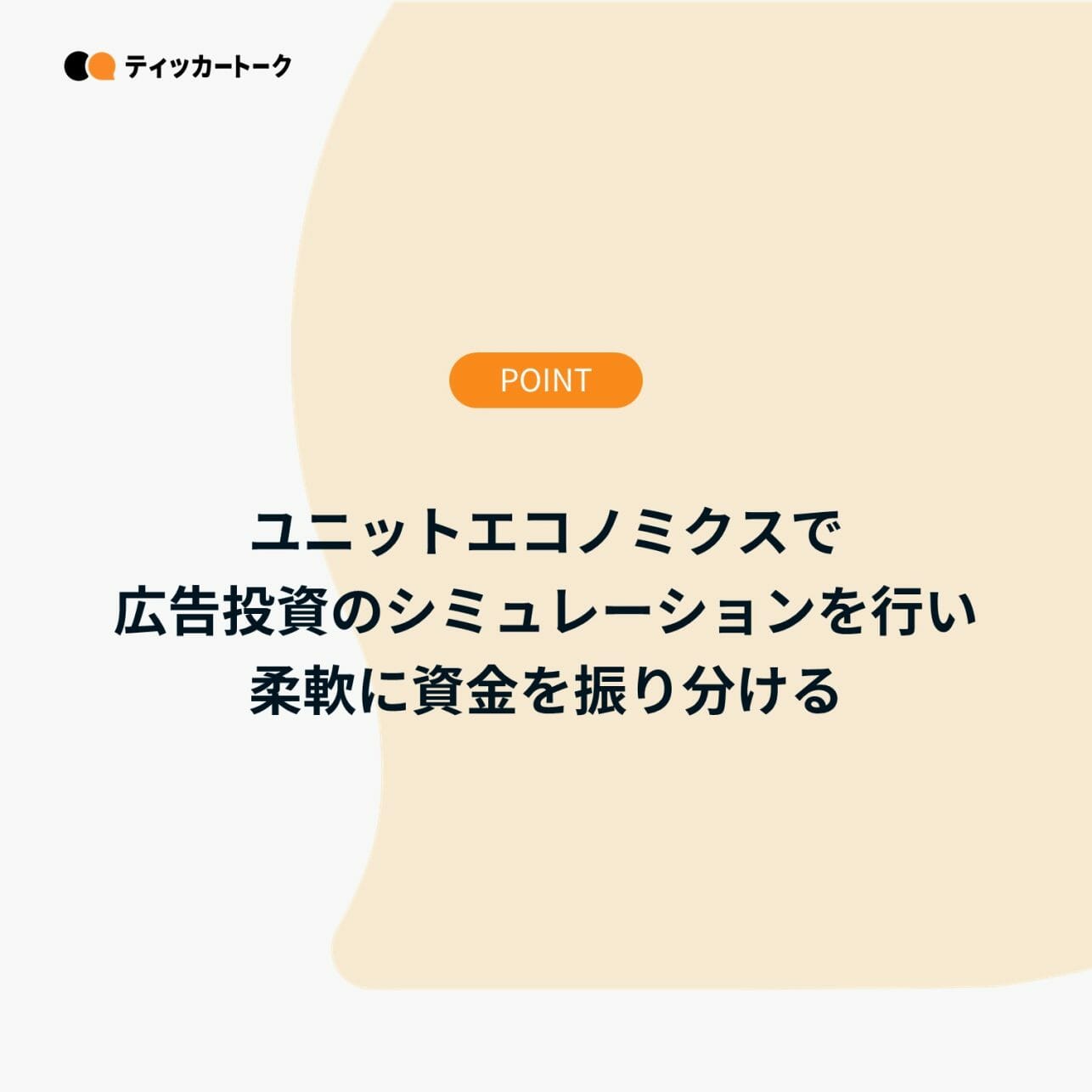 当社では、元々ユニットエコノミクス:「いくら投資をしたら、どのくらいの期間で回収できるか」をシミュレーションしながら投資をしています。しかし、「回収見込みがない」「回収に時間がかかりそう」といった見立て違いが発生したときには、必要に応じてチューニングしたり、元々想定していた額から投資を減らしたりすることはあり得ます。もしテレビCMよりもユニットエコノミクスが良さそうな投資先が見つかった場合は、そちらに資金を振り向けることもあり得ると考えています。