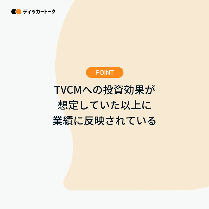 日本の場合は、様々な企業によってスマホゲームなどのCMが実際に打たれており、これは確かな効果があるということの一つの証左だと考えています。 二点目については、もっと短期的に業績に効果が表れると思っている方、大量に投資している割にはあまり購入数が伸びていないという評価をされる方もいます。しかし、過去3,4回テレビCMを打った際には、じわじわと中長期的にリターンとして成長に返ってくるという動きをしており、今回も想定通りかそれ以上の推移で進捗していますが、どうしても時間軸に起因する評価のギャップはあるかなと思います。