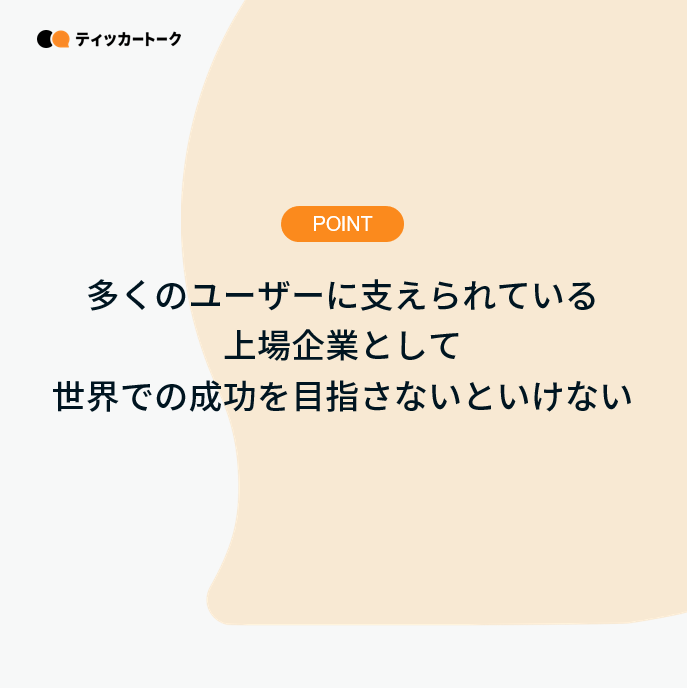 特にわかりやすいのはインターネットだと思います。世界で使われる、世界で通用するインターネットサービスは日本からは中々出てこない。でも、もはやインターネットが前提となって、あらゆる産業が変わるというのは不可逆的です。今後このデジタル化やネット活用で様々な産業にインパクトを与えて、生活者を豊かにすることが世界中から求められ続けることはもう変わらない。PR TIMESが日本で6万社以上に使っていただいて多くの人に見ていただけるのは、一定の成功かもしれません。ですが、上場企業としてふさわしい成功のためには、日本でこれだけ多くのユーザーに支えられているのに甘んじることなく、日本企業として世界で成功するというのを目指さないといけないと思っています。