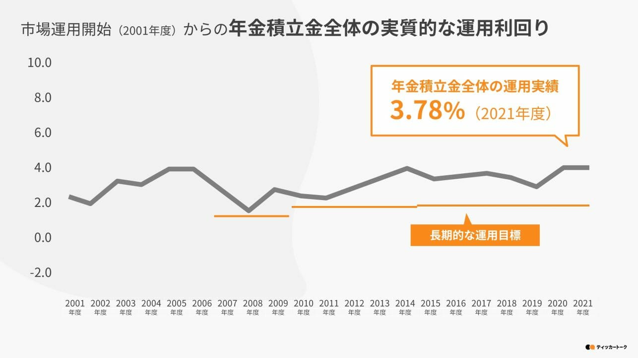 ちなみに、GPIFが今のような運用を開始した2001年から2021年度までの累積の実質運用利回りは3.78%と、目標を上回る数値で運用ができているようです。