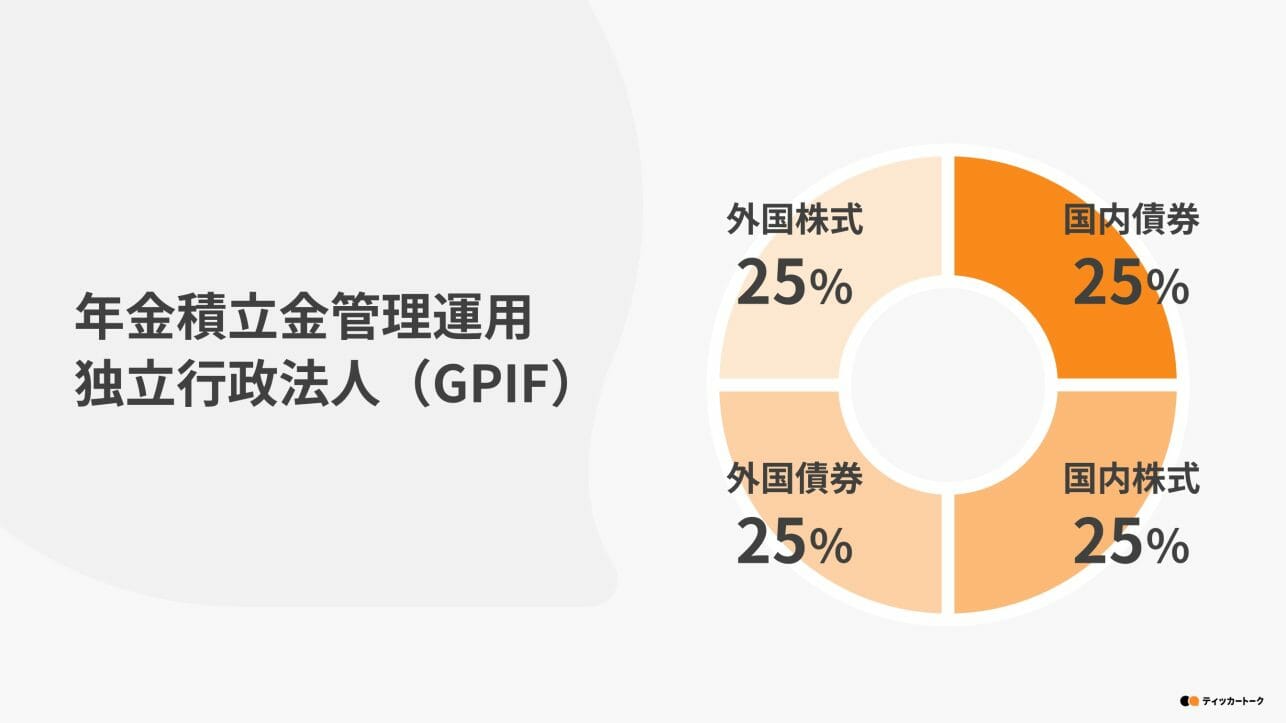 まずは、日本の国民年金や厚生年金、共済年金などの公的年金制度の運用資金を管理・運用する公的機関「年金積立金管理運用独立行政法人(GPIF)」のポートフォリオを見てみましょう。