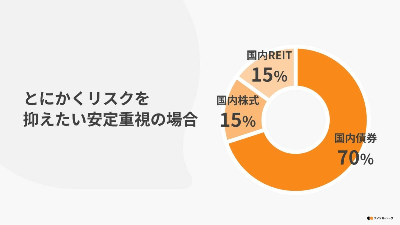 15%の割合で投資することで、株式市場の成長に一定のポジションを持ちつつ、リスクを抑えてバランスをとります。