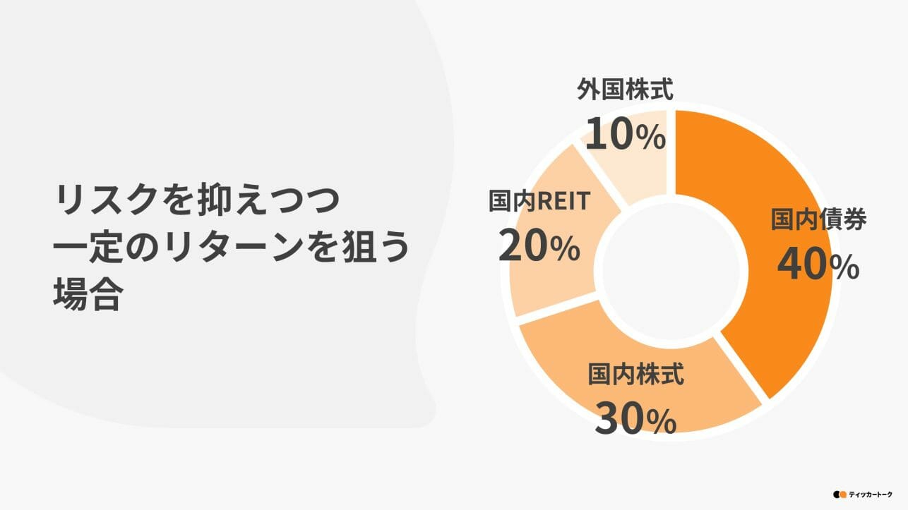 例えば、株式に50%、債券に30%、不動産に20%などのように配分します。