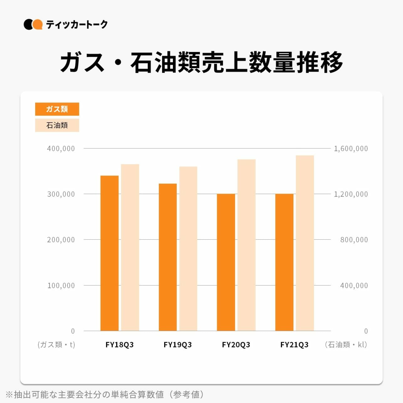 BtoB/BtoC事業の主力商材であるガス・石油類の売上数量は、概ね前期並みの推移となっている。