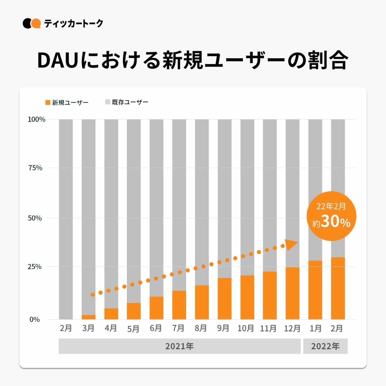 新規ユーザーの割合は、22年2月時点で約30%まで増加。広告宣伝投資の抑制により、Q2に開示した期末時点での新規ユーザー割合の見込みは「40%〜50%」には達しない見込み。ただしユーザーあたりの収益性・継続率が想定より向上していることから、売上高はQ2開示の通期業績予想達成を見込んでいる。特に継続率は、21年2月実績に比べて22年2月時点で1.7倍と大幅に改善している。