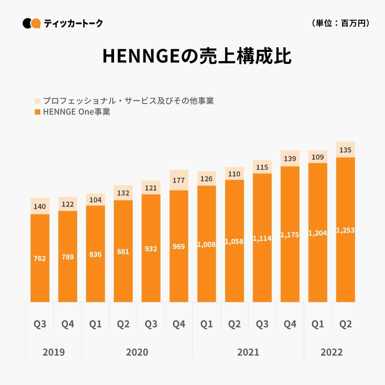HENNGE One事業が売上を牽引する構造は変わらず。プロフェッショナルサービス及びその他事業の売上は前年同期から微増。