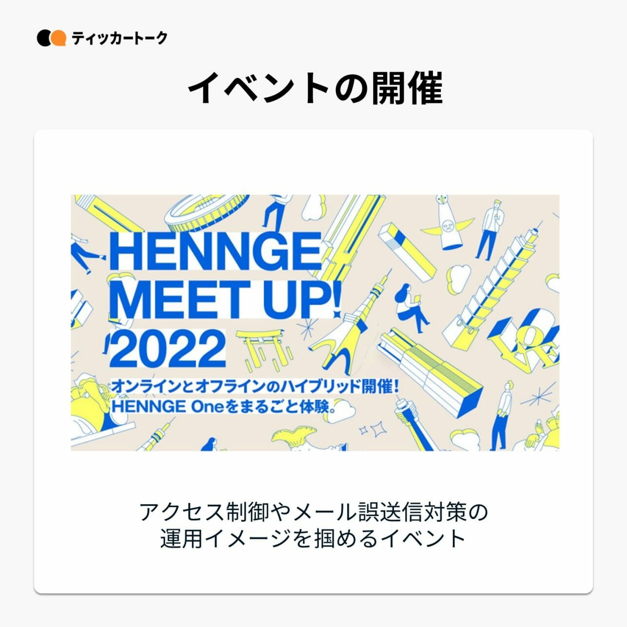 HENNGE Oneに実際に触れてもらい、アクセス制御やメール誤送信対策の運用のイメージを掴んでもらうイベント「HENNGE MEET UP! 2022」を実施。東京・名古屋・大阪・福岡の全国4都市のリアル会場のほか、オンラインでも開催した。