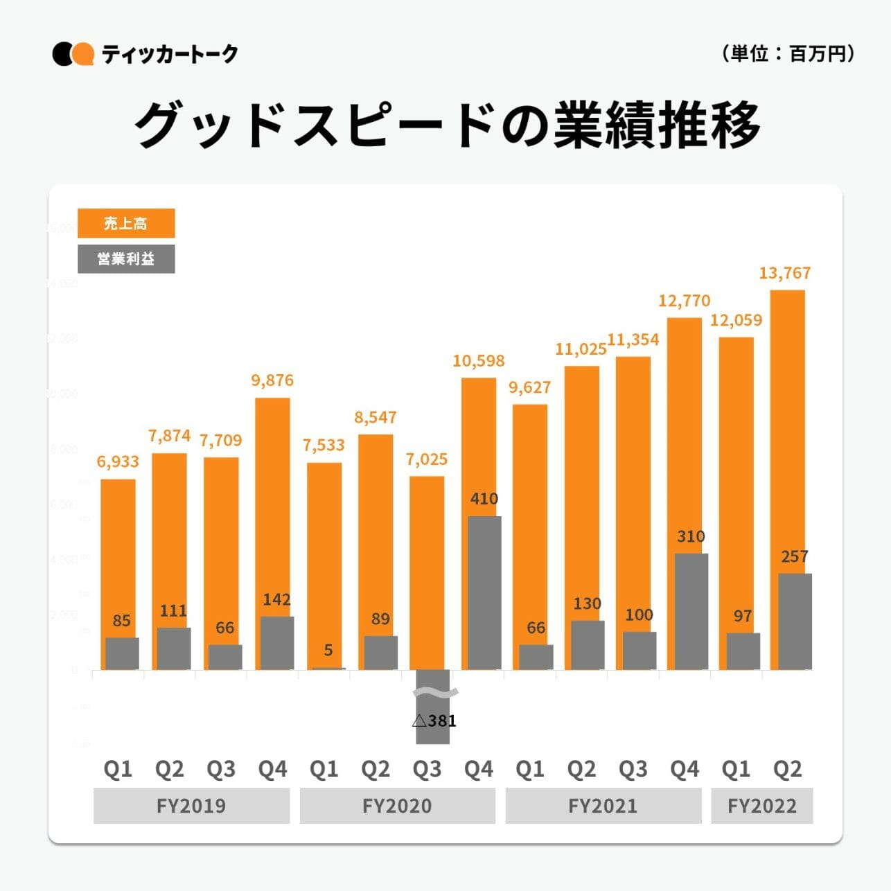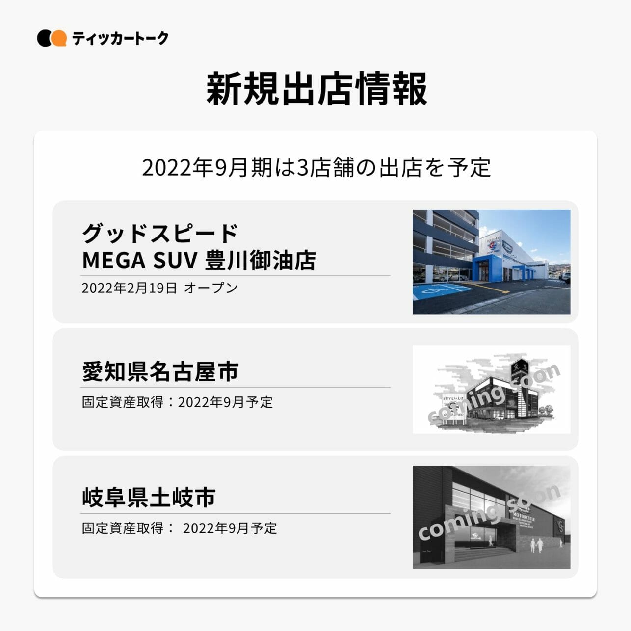 グッドスピードQ2決算MEGA専門店の新規出店各事業の伸長により増収