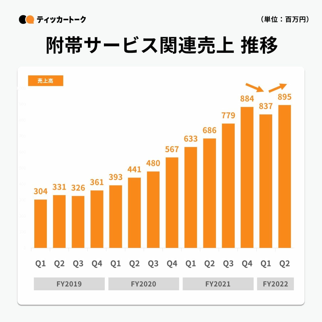 附帯サービス関連売上はQ1は一時的に成長が鈍化したがQ2に上昇傾向に回復Q3も整備ピットの増設と小売販売の拡大によって顧客の囲い込みを進め増収基調の継続に取り組む方針