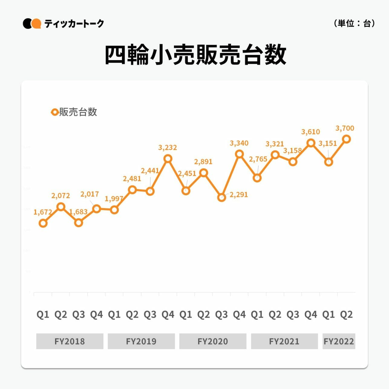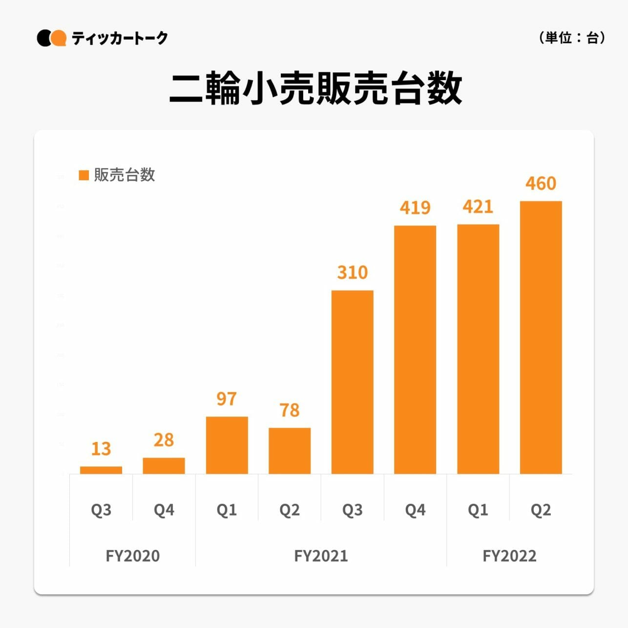 二輪小売販売台数は新規出店とM&Aにより前年同期対比で増加を継続