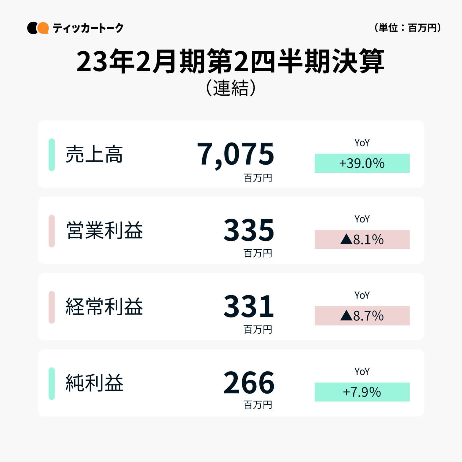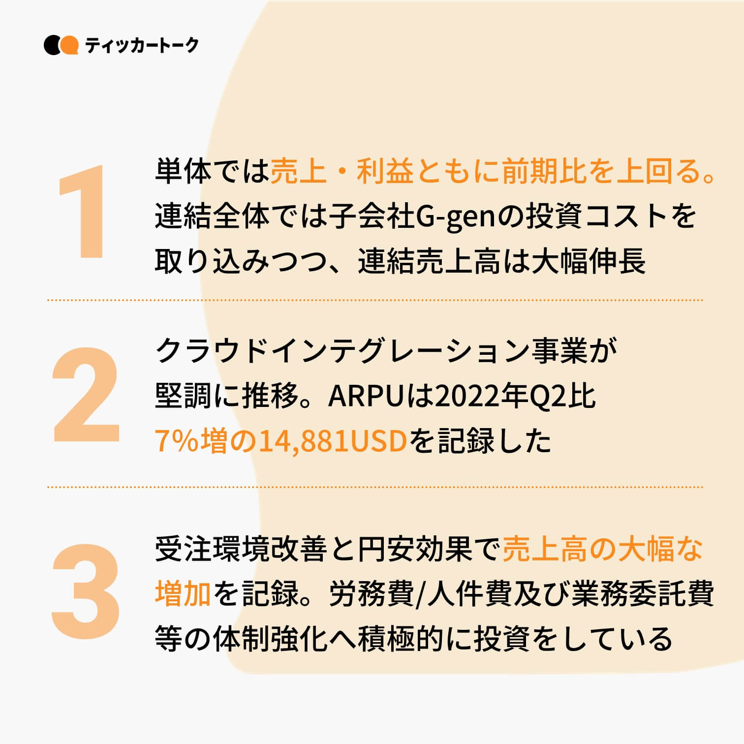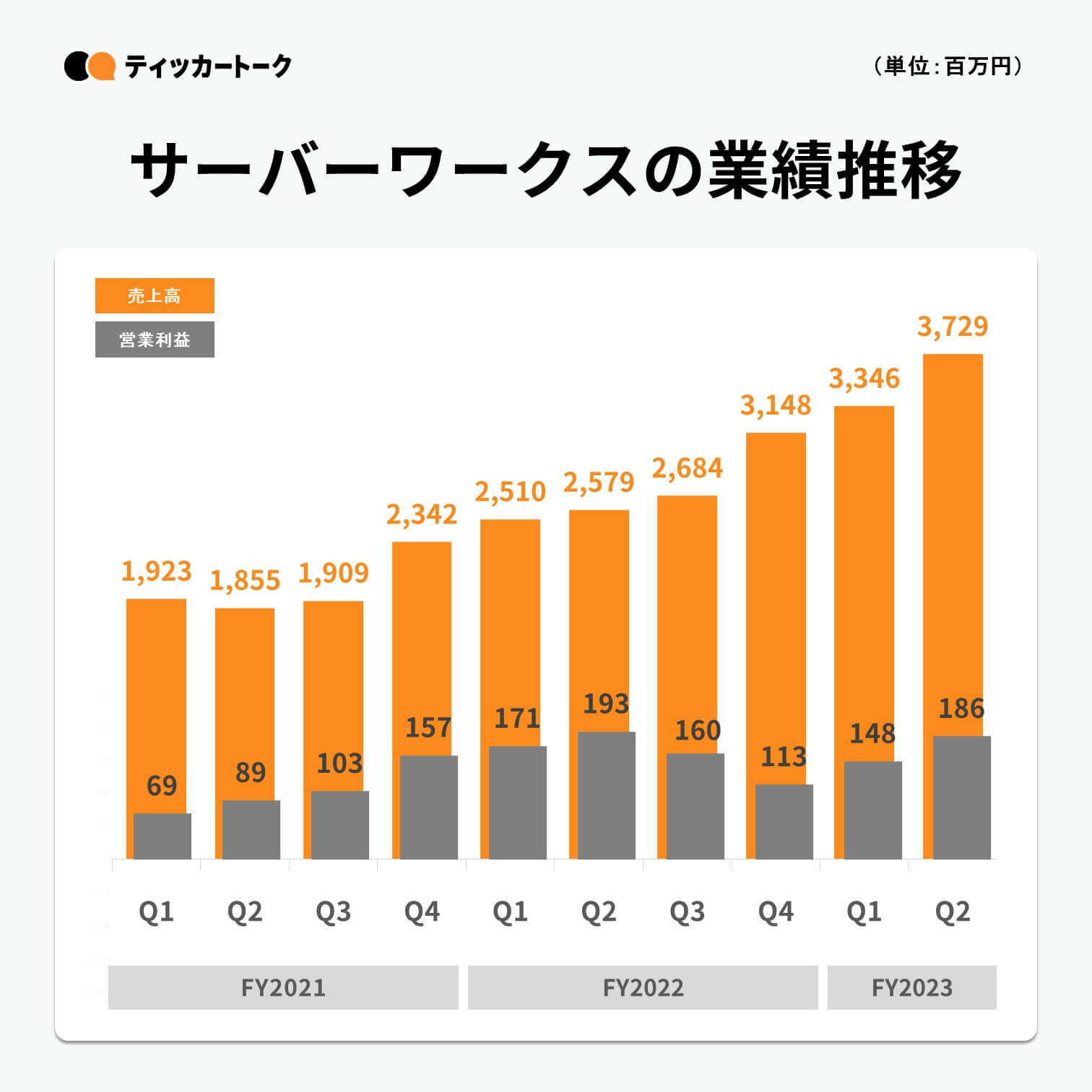 サーバーワークスは10月14日、2023年2月期第2四半期決算(2022年3月〜2022年8月)を発表しました。それでは決算の内容を見ていきましょう。