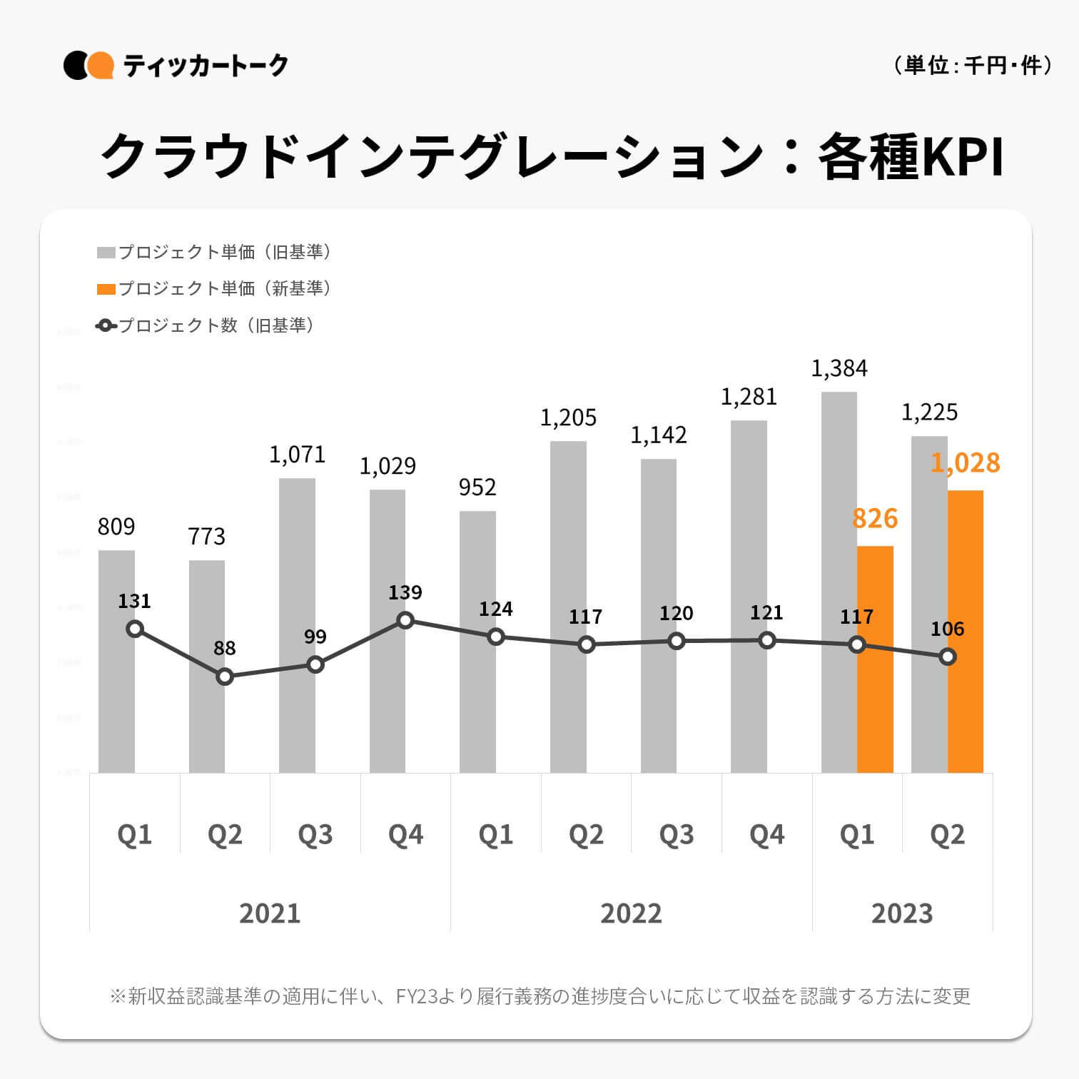 クラウドインテグレーションでは、引き続き旺盛な需要を背景に、一定のレンジで堅調な推移を記録。プロジェクト単価を順調に伸ばしている。※2023年2月期より新収益認識基準を適用