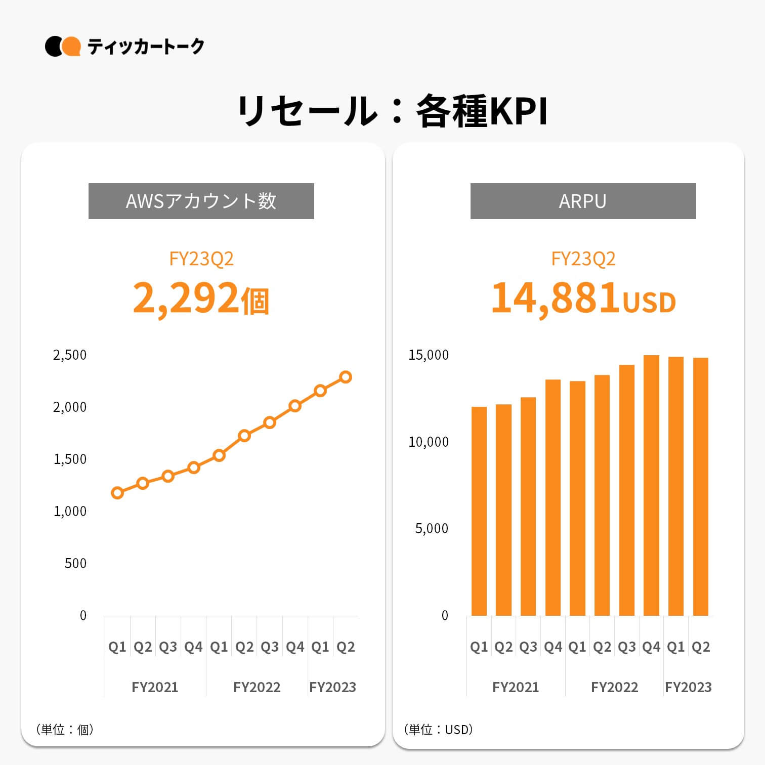 リセールは、前期に引き続き新規顧客が増加してAWSアカウント数が過去最高となった。それに伴う形でARPUも順調な推移を見せている。