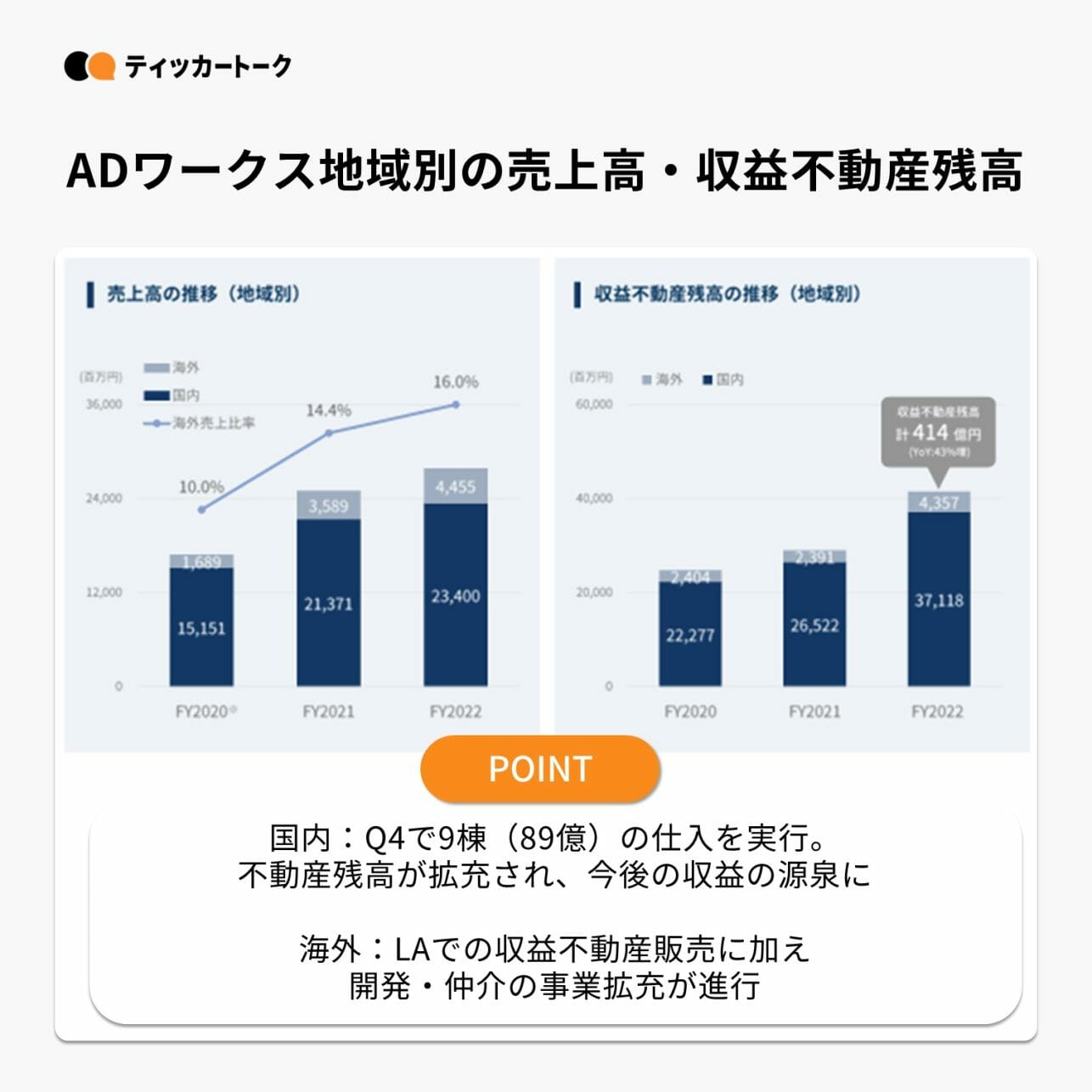国内の販売物件の平均単価はFY2020以降拡大を続け、営業効率が向上